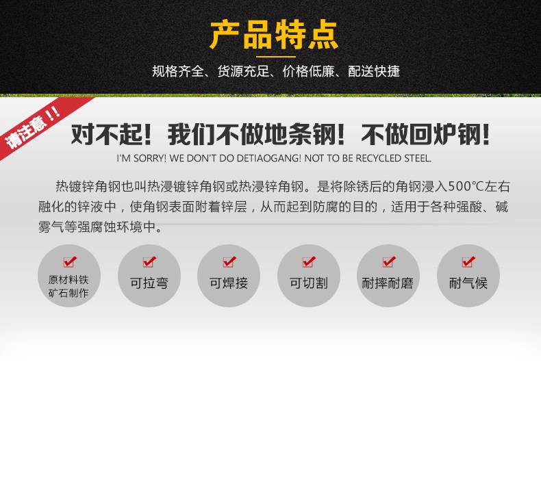 | 品名:等边角钢 | 材质:Q235B | 产地/厂家:山东 |