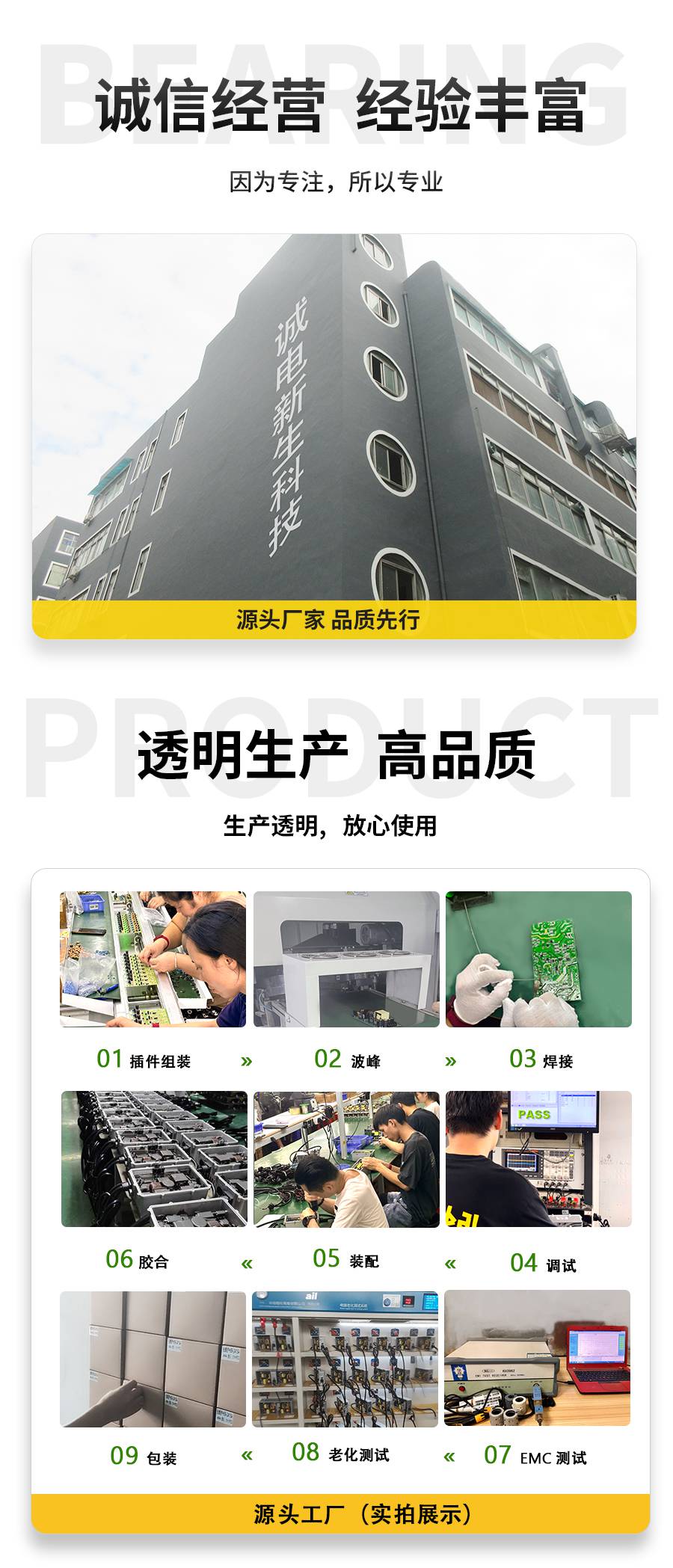 深圳市诚电新生科技有限公司位于深圳宝安福永,是专业从事电源及充电器的研发、生产、销售、服务为一体的公司。公司拥有经验丰富的研发人员,掌握领域核心技术,对产品不断创新升级,以严苛的生产标准,对品质精益求精,打造安全放心产品。 多年的研发及生产经验,让我们坚信,只有优质的品质与服务,才能更好的赢得市场的认可,诚电新生以舞台灯光电源市场为切入点,坚持以品质高,高稳定的产品满足市场需求。以完整、科学的管理体系,深耕工业电源、智能充电机、设备测试电源、大功率电源、设备电源等产品的制造研发。 以科技满足需求,诚电新生以其专业的研发实力,为客户打造私有化定制,全方位满足客户需求,为其提供***面的产品解决方案。