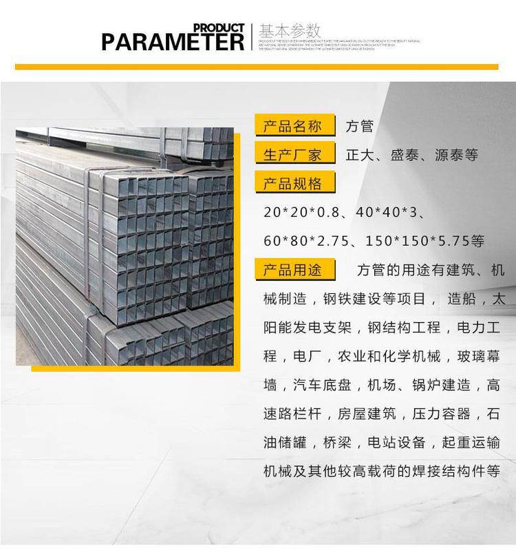 方管,是方形管材的一种称呼,也就是边长相等的的钢管。是带钢经过工艺处理卷制而成。