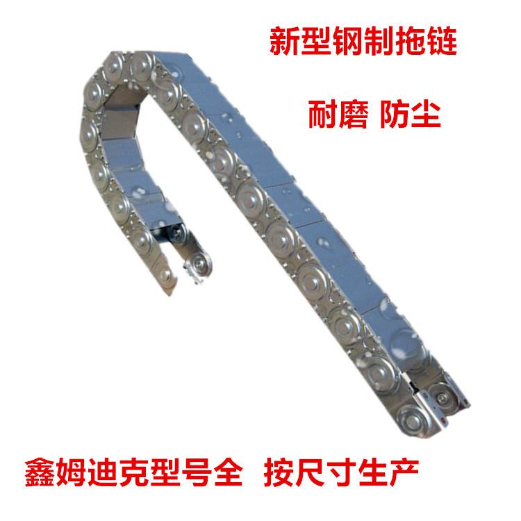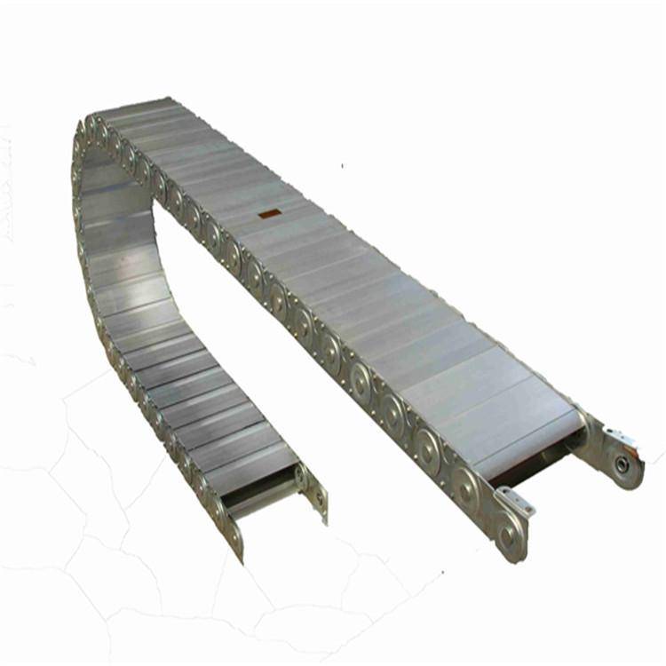 金属钢制坦克链 承重量大 车床TL125钢铝拖链 鑫姆迪克型号全TL系钢制拖链的主体是由链扳(优质钢板镀铬)支撑扳(挤拉铝合金)轴销(合金钢)等部件组成 TL系钢制拖链的主体是由链扳(优质钢板镀铬)支撑扳(挤拉铝合金)轴销(合金钢)等部件组成,使电缆或橡胶管与拖链之间不产生相对运动,不产生扭曲变形,链扳经镀铬处理外形效果新颖结构合理,灵巧强度高,钢性好不变形,安装方便,使用可靠,易拆装,尤其是采用高强度耐磨材料,合金铜为轴销,提高了产品的耐磨强度,弯曲更灵活,阻力更小,降低了噪音,从而可***长时间使***,不下垂。