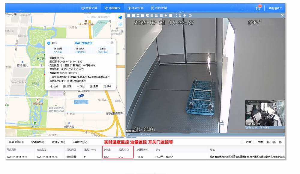 平板车琸源GPS北斗油箱油量油耗实时视频监测控系统
