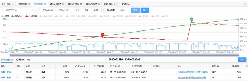 加油记录/异常耗油记录: 系统通过油量突然上升判断加油,通过油量异常下降判断可能漏油或偷油(需结合位置、时间等信息判断)。