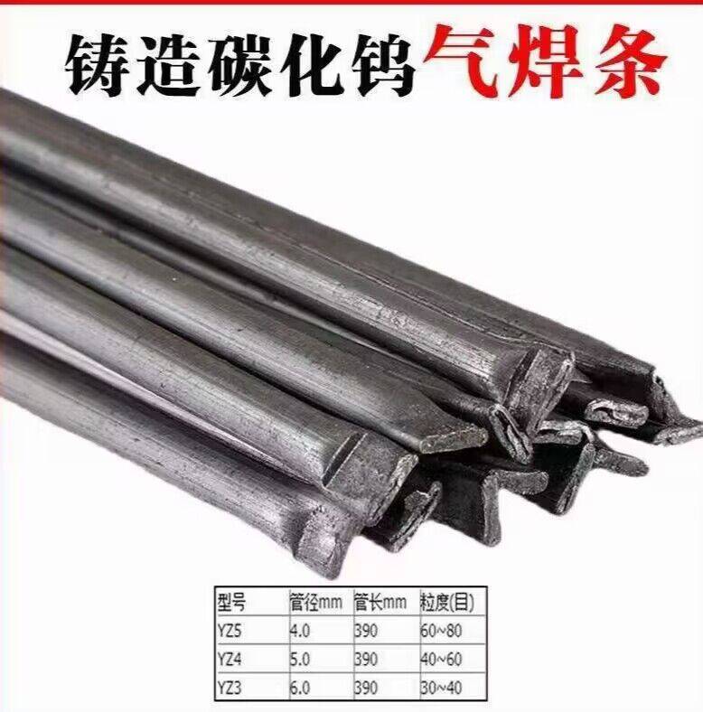 铸造碳化钨焊条管内成分为W2C和WC合金颗粒,硬度79HRA,熔点1600-1800度,采用氧气-乙炔焰堆焊,具有较高的耐磨性。