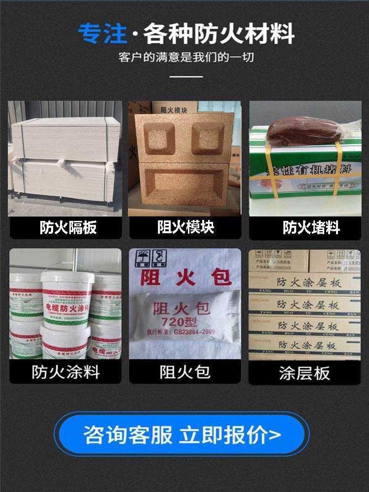 | 经营范围 | 加工销售:防火包、防火板、防火泥、防爆胶泥、防火包带、防火涂层板、防火布、无机堵料、柔性有机堵料、阻火圈、阻火模块、阻火包、灭火毯、硅胶布;销售:防火涂料、防火密封胶、防腐材料、保温材料、密封材料、建筑材料、化工产品(不含危毒品)。(依法须经批准的项目,经相关部门批准后方可开展经营活动) | ||