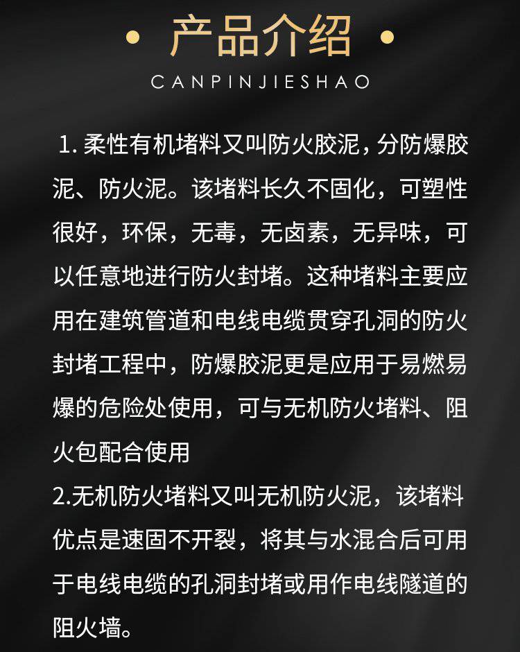 | 包装形式:袋装/纸箱 | 适用范围:电缆孔洞封堵 | 特性:可塑性强 |