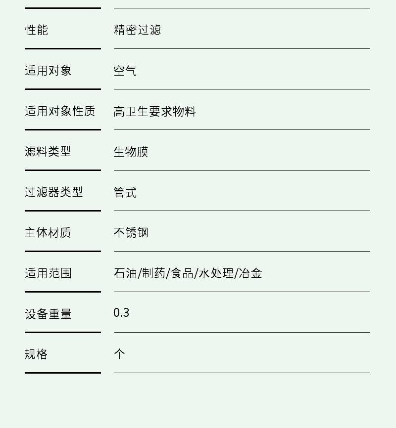 | 性能:精密过滤 | 适用对象:空气 | 适用对象性质:高卫生要求物料 |