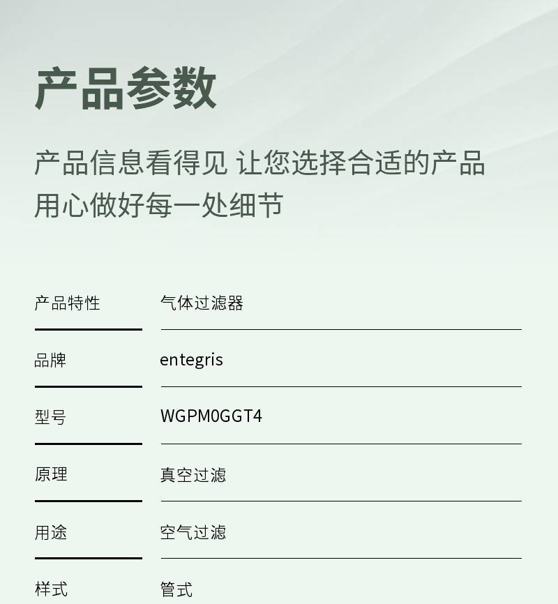 | 产品特性:气体过滤器 | 品牌:entegris | 型号:WGPM0GGT4 |