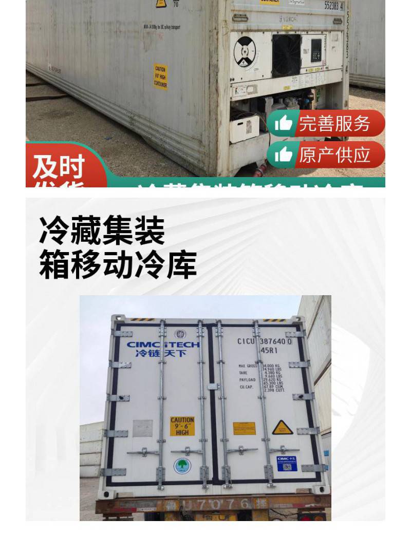 本页信息为西安柜通供应链有限公司为您提供的"隔热良好 20RF冷藏集装箱 快速发货 可适用于易腐食品运送"产品信息,如您想了解更多关于"隔热良好 20RF冷藏集装箱 快速发货 可适用于易腐食品运送"价格、型号、厂家请联系厂家,或给厂家留言。 进入店铺