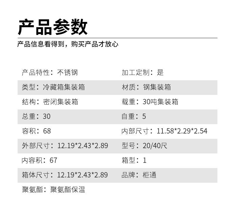 | 产品特性:不锈钢 | 加工定制:是 | 类型:冷藏箱集装箱 |