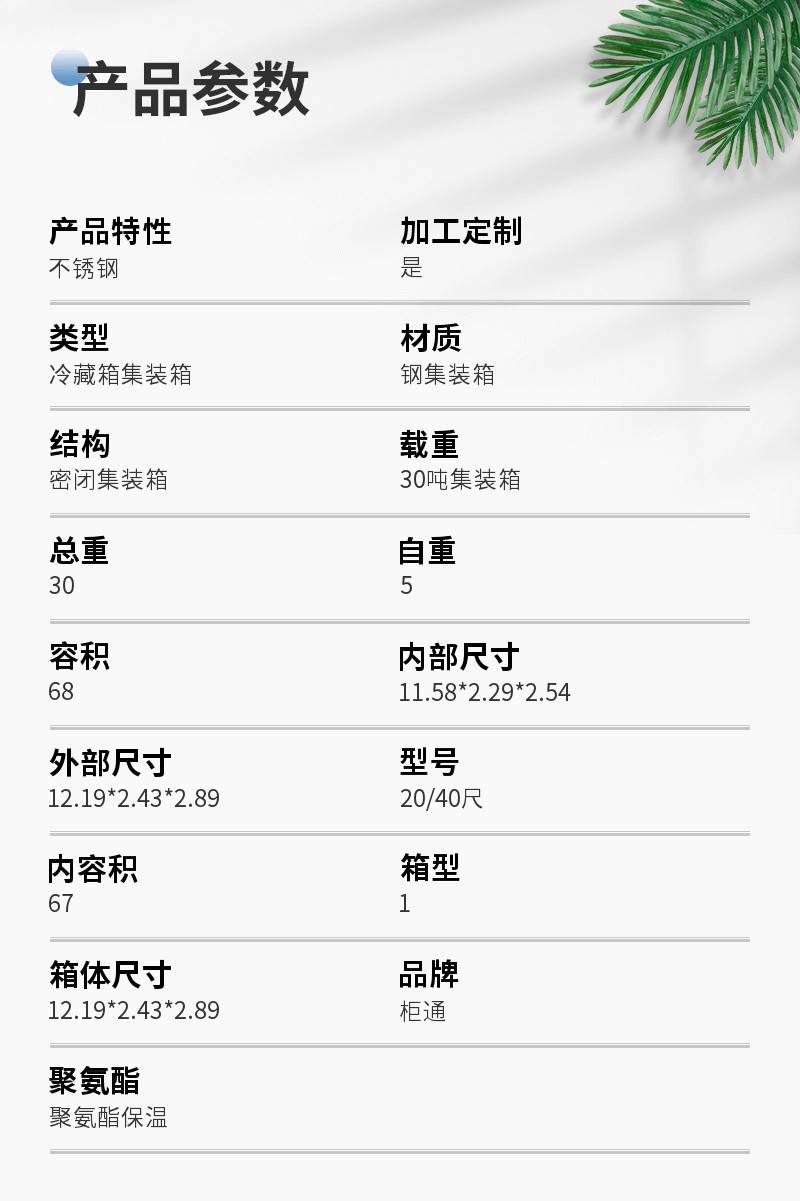 | 产品特性:不锈钢 | 加工定制:是 | 类型:冷藏箱集装箱 |
