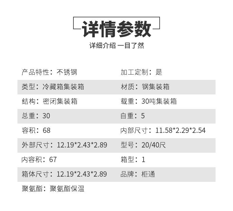| 产品特性:不锈钢 | 加工定制:是 | 类型:冷藏箱集装箱 |