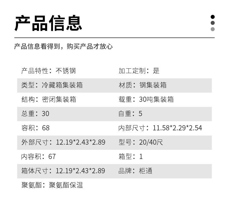 | 材质:钢集装箱 | 结构:密闭集装箱 | 载重:30吨集装箱 |