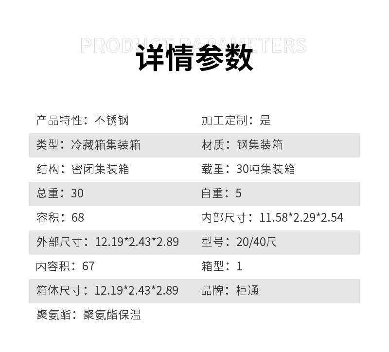 | 产品特性:不锈钢 | 加工定制:是 | 类型:冷藏箱集装箱 |