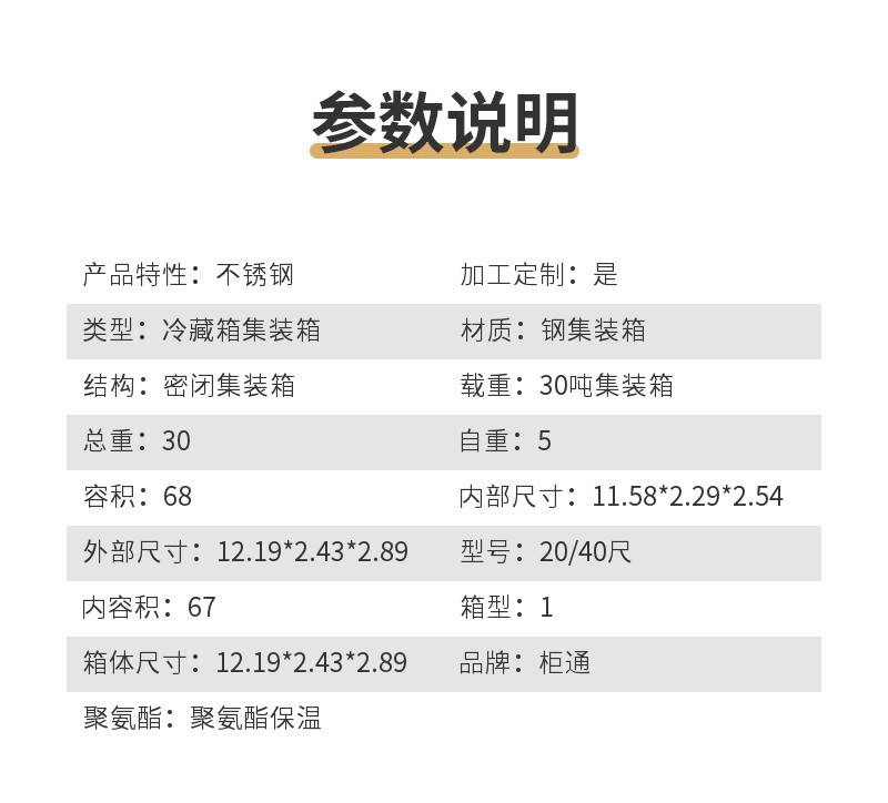 | 产品特性:不锈钢 | 加工定制:是 | 类型:冷藏箱集装箱 |