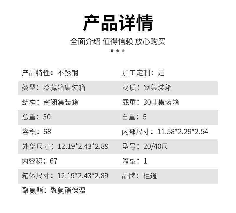 | 产品特性:不锈钢 | 加工定制:是 | 类型:冷藏箱集装箱 |