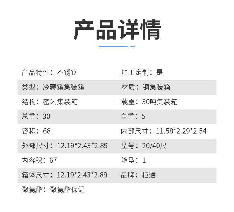 | 产品特性:不锈钢 | 加工定制:是 | 类型:冷藏箱集装箱 |