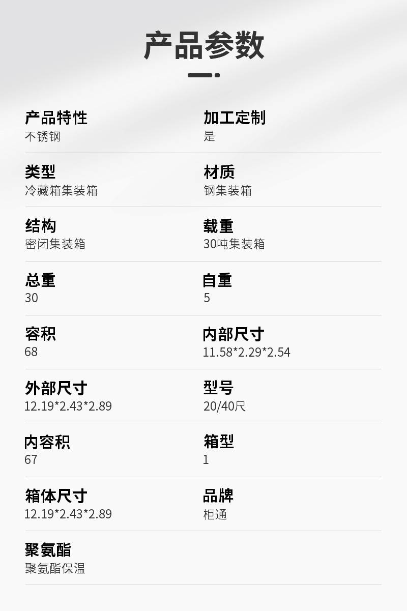 | 材质:钢集装箱 | 结构:密闭集装箱 | 载重:30吨集装箱 |