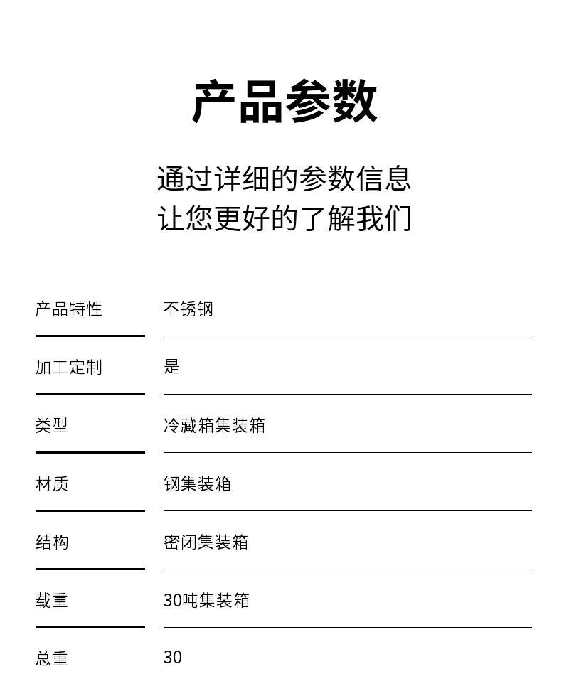 | 材质:钢集装箱 | 结构:密闭集装箱 | 载重:30吨集装箱 |