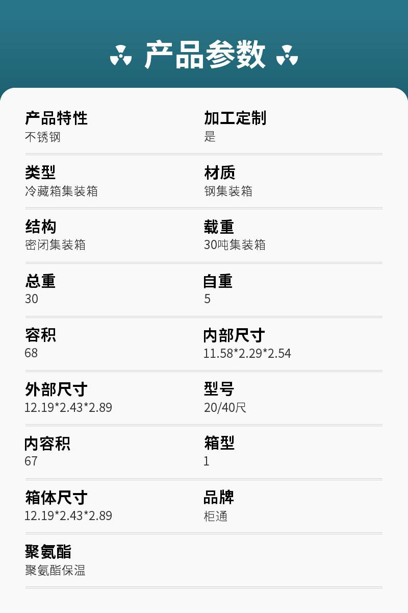 | 产品特性:不锈钢 | 加工定制:是 | 类型:冷藏箱集装箱 |