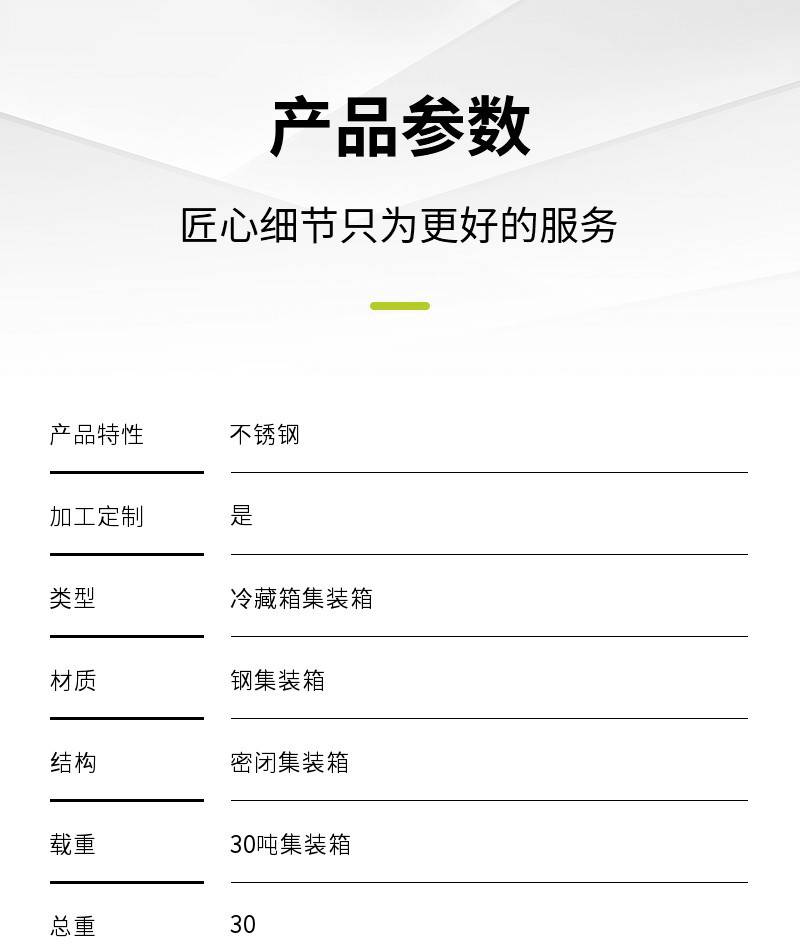 | 产品特性:不锈钢 | 加工定制:是 | 类型:冷藏箱集装箱 |