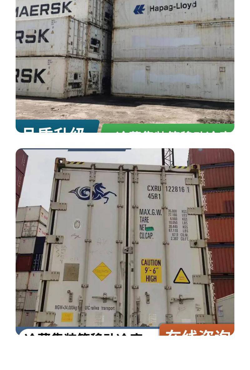 本页信息为西安柜通供应链有限公司为您提供的"柜通物流冷藏冷冻集装箱出售 移动冷库 6米12米二手集 装箱"产品信息,如您想了解更多关于"柜通物流冷藏冷冻集装箱出售 移动冷库 6米12米二手集 装箱"价格、型号、厂家请联系厂家,或给厂家留言。 进入店铺