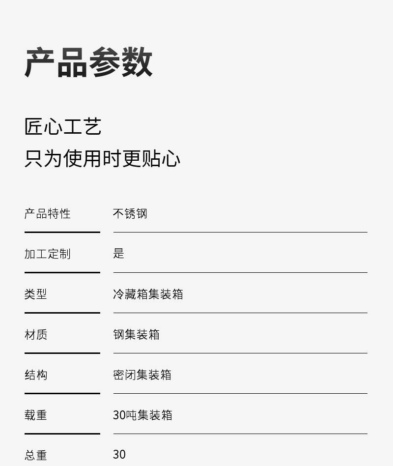 | 材质:钢集装箱 | 结构:密闭集装箱 | 载重:30吨集装箱 |