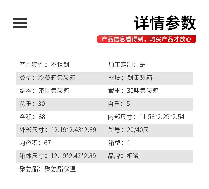 本页信息为西安柜通供应链有限公司为您提供的"柜通物流 果蔬饮料 集装箱冷库 易清洁防爆规范 支持定制"产品信息,如您想了解更多关于"柜通物流 果蔬饮料 集装箱冷库 易清洁防爆规范 支持定制"价格、型号、厂家请联系厂家,或给厂家留言。 进入店铺