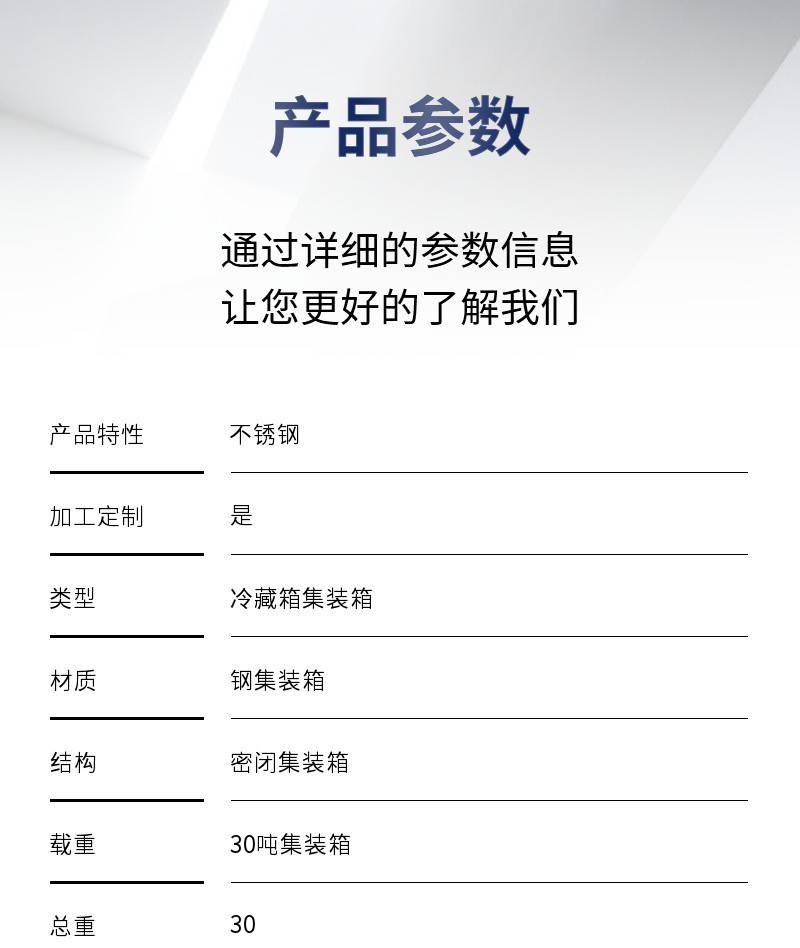 | 材质:钢集装箱 | 结构:密闭集装箱 | 载重:30吨集装箱 |