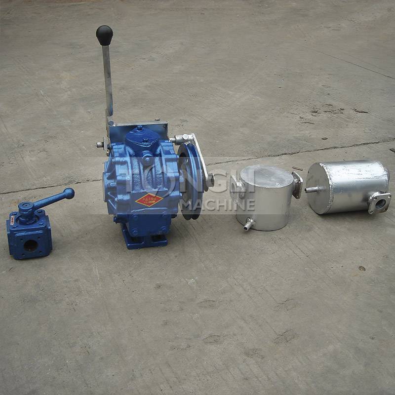 吸粪真空泵(抽渣真空泵)广泛用于沼气池出污、厕所出便、鱼塘抽泥浆、鸡厂猪厂出粪、酒店清理饭废渣与生活废水、工厂吸污水、以及城市排污……沼气泵是真空吸排车在作业中的核心部分。它把密封罐内的空气抽至一定真空,罐内形成负压,使地面以下或以上的粪液、污水、石油等各种流体自动吸入罐内,以便采收运输。本沼气设备安装随意:可自行安装于三轮车、拖拉机、气车上,也可与电机配合使用。