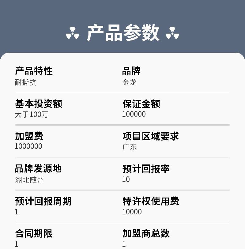 | 产品特性:耐撕抗 | 品牌:金龙 | 基本投资额:大于100万元 |