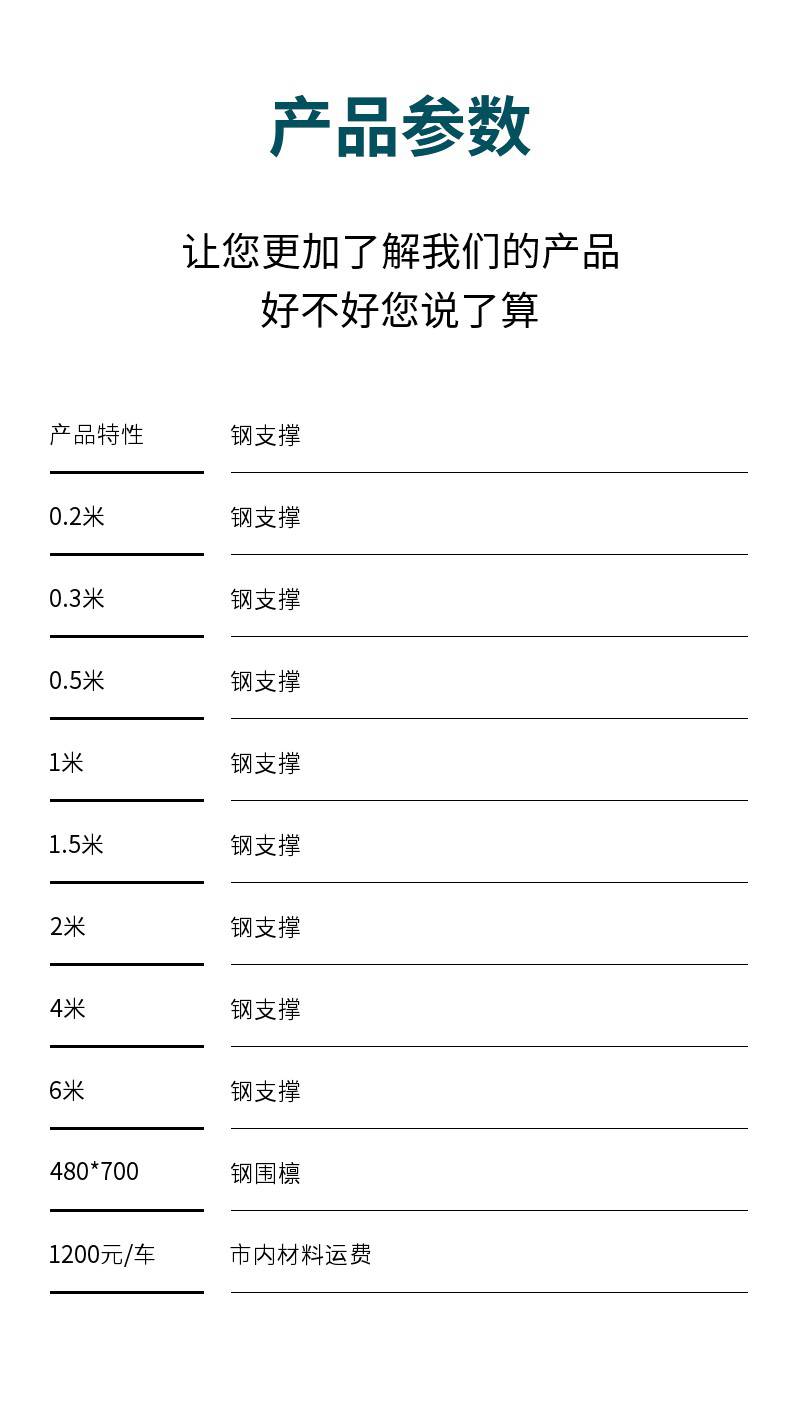 | 产品特性:钢支撑 | 0.2米:钢支撑 | 0.3米:钢支撑 |
