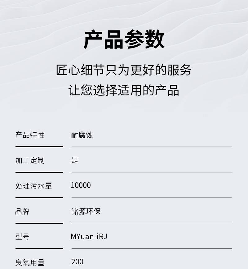 | 品牌:铭源环保 | 型号:MYuan-iRJ | 臭氧用量:200g/h |