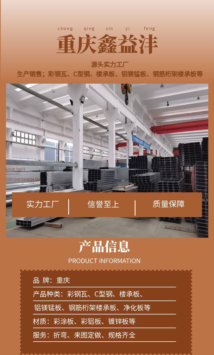 | 产品特性:重庆楼承板 | 产地:重庆 | 材质:Q235B/Q355B |